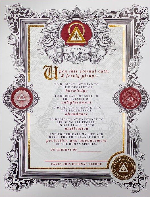 Since our origination, Illuminati members have dedicated themselves to the advancement of the human species by taking oaths of commitment. These pledges are a core tradition of the Illuminati, formed as written contracts between a single person and all members of humanity.